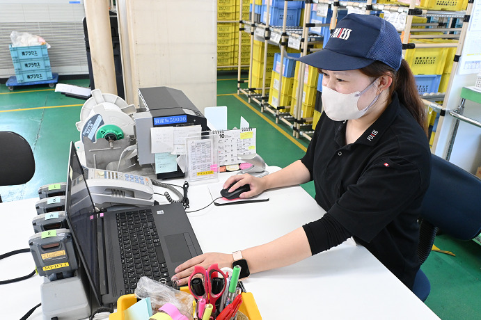 主な仕事内容は、お客様の要望に合わせて製造されるプラスチック部品を行先ごとにピッキングし、梱包する出荷業務です。